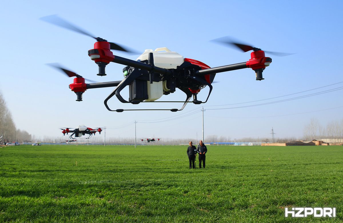 无人机对麦田进行喷灌、喷洒农药。 李新义 摄