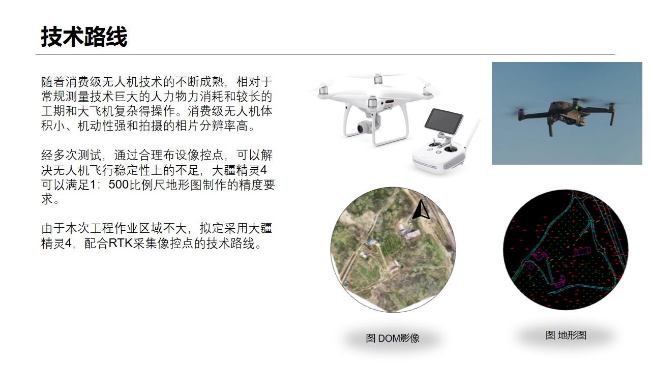 随着消费级无人机技术的不断成熟,相对于常规测量技术巨大的人力物力消耗和较长的工期和大飞机复杂得操作。消费级无人机体积小、机动性强和拍摄的相片分辨率高。