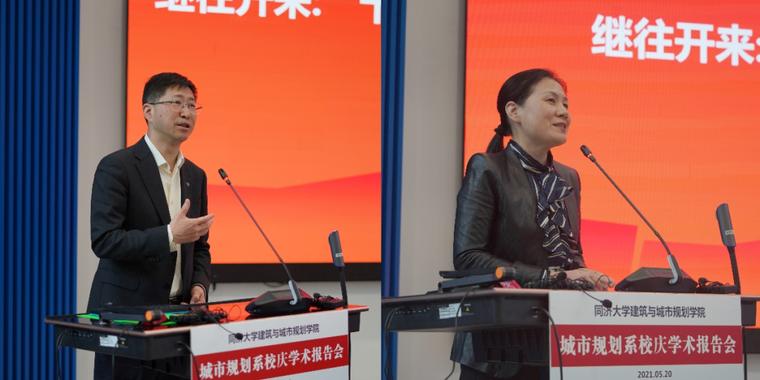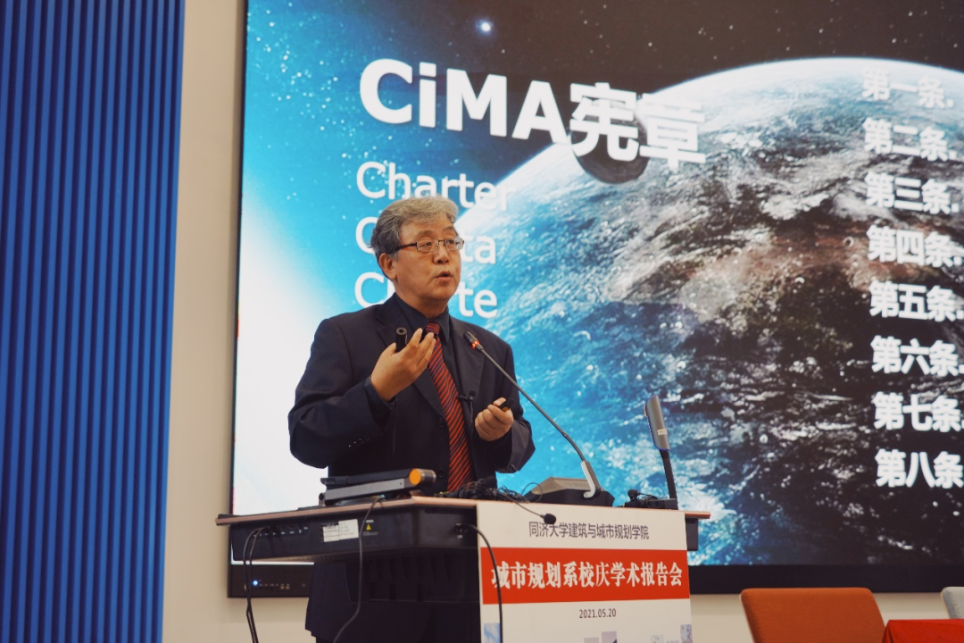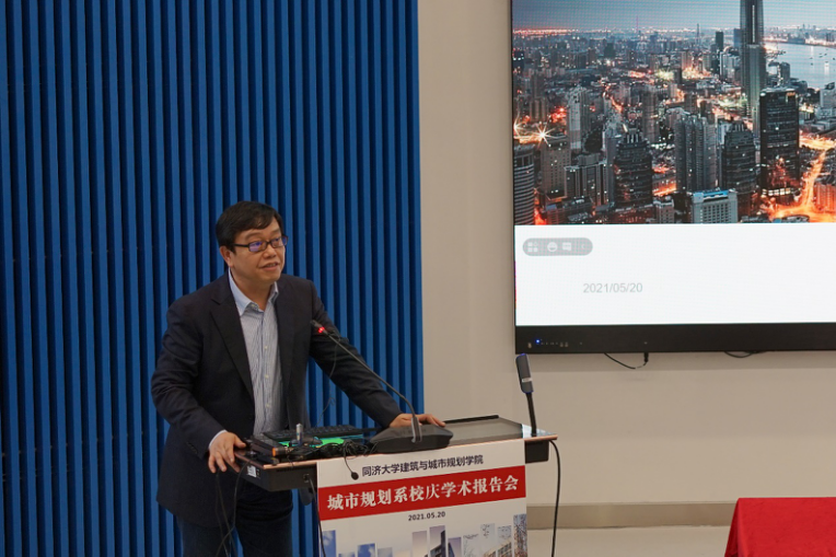 同济大学建筑与城市规划学院城市规划系2021年校庆报告会于5月20日下午在文远楼106报告厅隆重召开。报告会开篇的特别环节由系主任卓健教授主持,同济大学党委副书记彭震伟教授、建筑与城市规划学院党委书记刘颂教授先后致辞,建筑与城市规划学院院长李翔宁教授到会祝贺,共同见证中国工程院院士吴志强教授“CiMA(人类数字城市图谱)全球科学家计划”首发的重要历史时刻。大会报告上、下半场分别由程遥副系主任、陈晨副系主任主持,唐子来、孙施文、王德、戴慎志、沈清基、张尚武6位教授围绕“继往开来:十四五开局之年的规划展望”的报告会主题先后作主旨报告。建筑与城市规划学院副院长王兰教授、副院长耿慧志教授进行了精彩点评。规划系宋小冬教授、潘海啸教授、钮心毅教授、黄建中教授、黄怡教授、刘冰教授、张立副教授等30多位教师与研究生们参与了现场讨论。报告会全程通过腾讯会议和Bilibili平台同步直播,线上参会人数超过4万余人次。