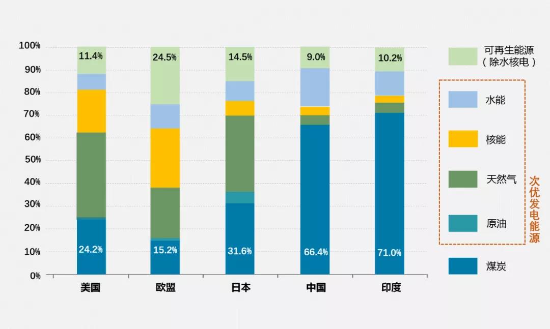 发电结构(2019):中国以煤炭为主,发达经济体以次优能源为主数据来源:ECIU,华泰证券研究所,城PLUS重绘