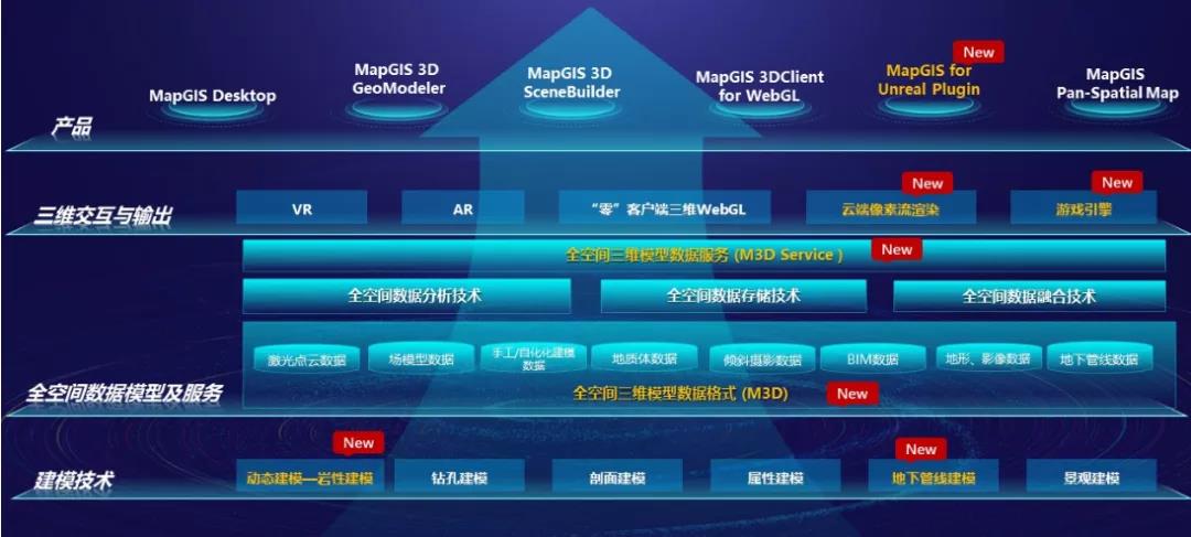 围绕M3D标准规范,MapGIS 10.5 Pro集成 WebGL、虚拟现实(VR)、增强现实(AR)、游戏引擎、岩性建模等新技术,完善了全空间GIS标准体系,增强了全空间数据融合工具,并优化了全空间场景渲染性能,实现景观模型、倾斜摄影模型、BIM、激光点云、地质体等多源异构数据的全方位融合。