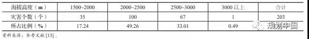 表2 地质灾害不同高程带的分布统计表