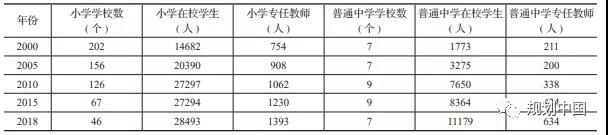 近20年教育改革和撤并,促进了教育服务在县域城乡间的结构变化。从2000至2018年,学龄人口不断向城镇集聚。在校生人数在镇区和乡村分布较为均衡,但初中以上在校生镇区明显高于乡村(见表4)。小学在校学生数逐年递增,但小学学校数迅速减少,超过四分之三的学校被撤并(见表5)。实地调研也明显发现教育推动县域城镇化的路径:即分散的农村加上人口流出,导致农村服务需求的减少。此外,交通条件受阻下学生通勤时间长,进一步推动学生进县城进乡镇上学,而农村就业承载力弱也促进了家长进县城进乡镇陪读和打工。