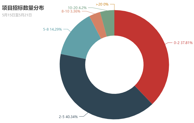 全省各县市区本周采购的项目为469个,其中有45个县市区采购项目小于2个,占全部采购县市区的37.81%;有48个县市区采购项目在2至5个,占全部采购县市区的40.34%;有17个县市区采购项目在5至8个,占全部采购县市区的14.29%;有4个县市区采购项目在8至10个,占全部采购县市区的3.36%;有5个县市区采购项目大于10个,占全部采购县市区的4.2%。