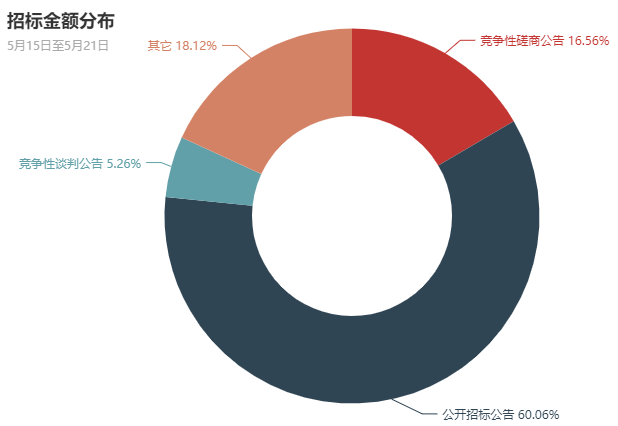 本周单项目招标金额基本体现了以公开招标为主流、多种采购形式为补充的灵活多变的政府采购形式。