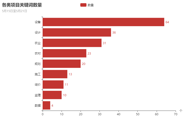 在本周的政府采购项目中,设备、设计类项目占比最大,其次为农村类、规划类、施工类、询价类、监理类、数据类。数据表明,农业、设备类项目已经成为政府采购的主要方向。