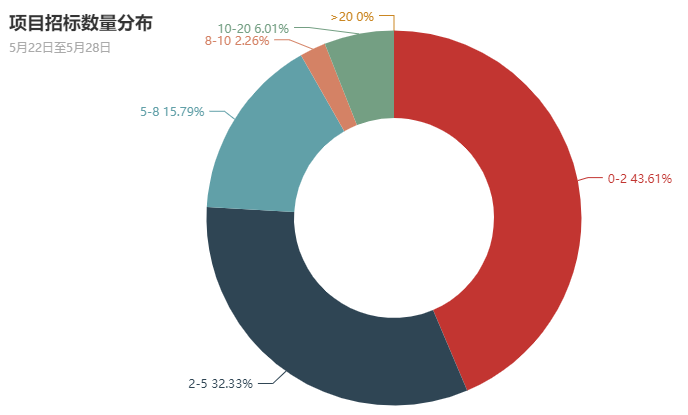 全省各县市区本周采购的项目为537个,其中有58个县市区采购项目小于2个,占全部采购县市区的43.61%;有43个县市区采购项目在2至5个,占全部采购县市区的32.33%;有21个县市区采购项目在5至8个,占全部采购县市区的15.79%;有3个县市区采购项目在8至10个,占全部采购县市区的2.26%;有8个县市区采购项目大于10个,占全部采购县市区的6.01%。