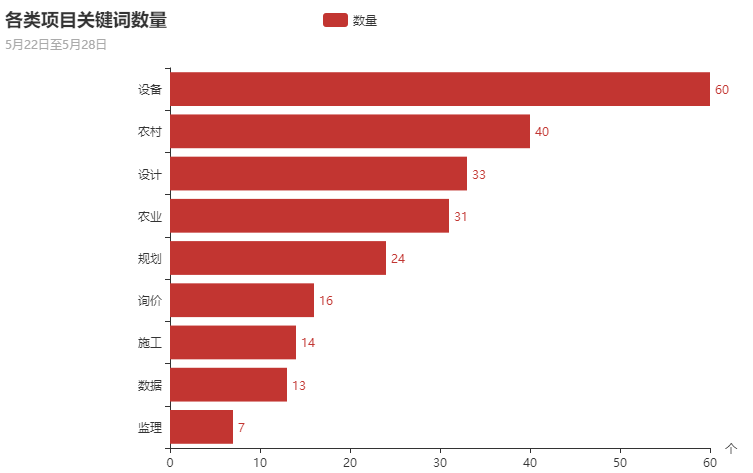 在本周的政府采购项目中,设备、农业类项目占比最大,其次为农村类、施工类、监理类、设计类、规划类。数据表明,农业、设备类项目已经成为政府采购的主要方向。