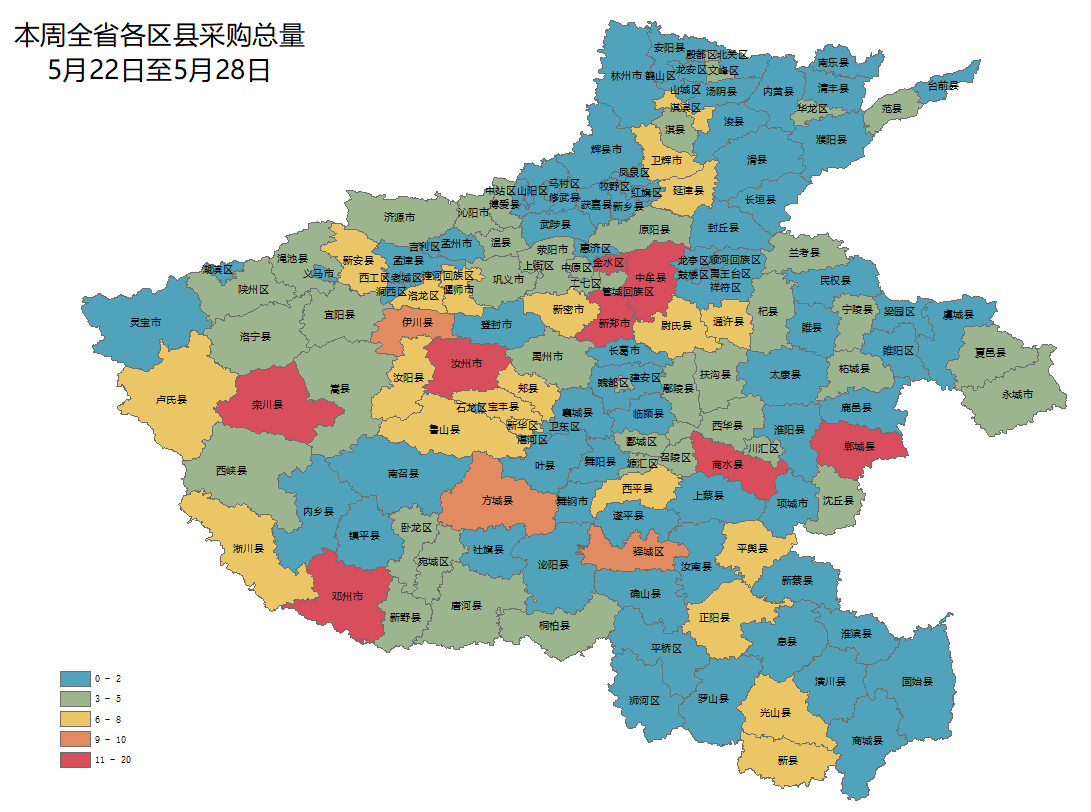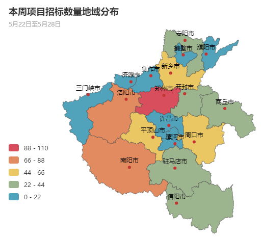从采购项目总量分布上来看,本周郑州市、洛阳市、平顶山市、南阳市、周口市采购需求占主导地位。