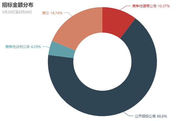 本周单项目招标金额基本体现了以公开招标为主流、多种采购形式为补充的灵活多变的政府采购形式。