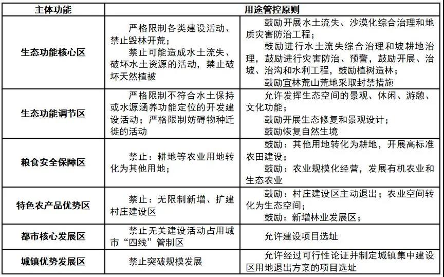 基于重点生态功能区、农产品主产区、城市化发展区的管控需求,对六类主体功能区进行分类管控引导。