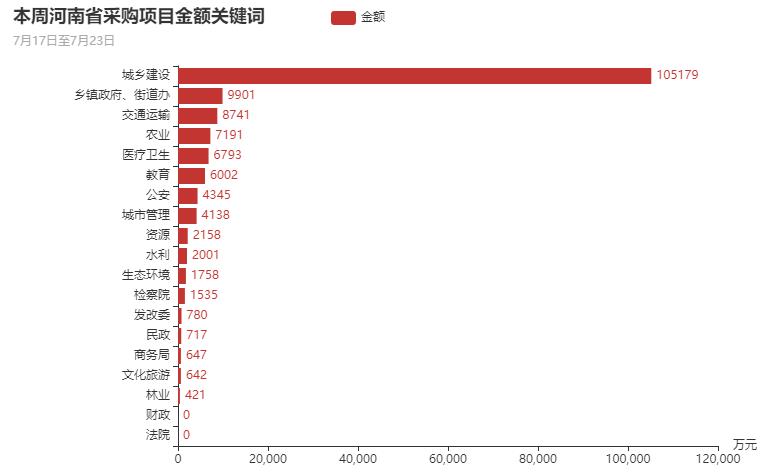 截止2021年07月23日,本周政府采购共发出项目招标信息568项,政府采购金额(按招标公告口径统计)总计3412716293元,政府采购项目涉及全省18个地市(含济源市),115个县(市、区)。