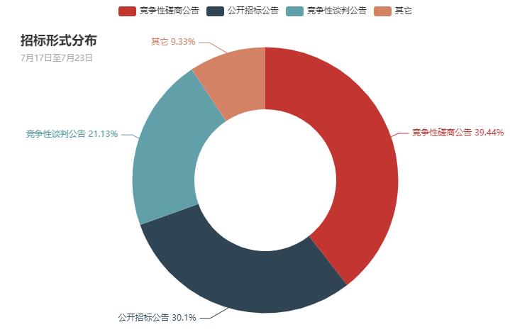 本周数据表明,河南政府采购市场中,公开招标、竞争性谈判和竞争性磋商形式在政府采购中依然占主体地位。