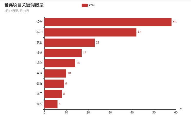 在本周的政府采购项目中,设备、农村类项目占比最大,其次为农业类、设计类、规划类、监理类、数据类、施工类、询价类。数据表明,设备、农村类项目已经成为政府采购的主要方向。