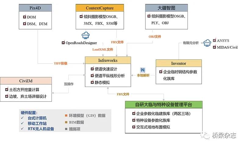BIM+无人机场地布置技术框架 基于BIM+无人机的三维场地布置方法是数据驱动的数字化解决方案。GIS数据、BIM数据是整个解决方案的基础。围绕数据基础,可以利用特定的软硬件搭建技术框架,其软件功能主要包括GIS数据生产、BIM数据生产、数值分析、场景模拟等。 总体技术框架 无人机数据生产 GIS数据是上述技术框架的数据底板,是数据基础的关键组成。这主要是因为,一方面,GIS数据可以对施工现场环境进行三维重建;另一方面,GIS数据集成了整个应用体系所需要的地理参考。采用无人机采集施工现场GIS数据用于三维重建是一种经济、高效的方法,特别是近年来,倾斜摄影测量技术的发展,为施工现场三维重建提供了新思路。目前围绕三维场地布置模拟,主要有两种类型的数据生产工作:一种是带实景纹理的数字地形模型,另一种是倾斜摄影模型。这两种三维重建方式,都能较好地还原施工现场,用户需根据实际情况选择不同的方案,前者多用于计算分析,后者多用于可视化展示。 数字地形模型生产 带实景纹理的数字地形模型,可以采用正直摄影测量的方式进行外业采集,该方式在保证效果的前提下,能极大降低外业数据采集的工作量以及内业数据处理计算资源消耗。 带实景纹理的数字地形模型效果图 带实景纹理的数字地形模型本质是由DEM(Digital Elevation Model,数字高程模型)/DTM(Digital Terrain Model,数字地面模型)与DOM(Digital Orthophoto Map,数字正射影像)合成。 免相控正直摄影数据处理流程 其中,DEM/DTM用于构建几何模型,DOM用于纹理贴图。采用Pix4D软件进行正直摄影航测数据内业生产,能得到较好效果的DOM和DSM,但由DSM到DTM/DEM还需要进行点云分类,用于过滤地物,以得到准确的地形数据。值得一提的是,通过软件自动进行的点云分类结果并不总是准确的,往往需要通过大量的人工编辑进行错分类纠正。 点云分类纠正结果 倾斜摄影模型生产 倾斜摄影模型能较好地还原真实世界,常被用于机械设备操作模拟、大型设备运输关键路径检查等,对现实环境还原度要求高的场景。此外,也可被用于搭建场地布置模拟的环境模型。 倾斜摄影模型效果 采用大疆智图或ContextCapture进行免相控倾斜摄影模型数据生产时,其主要工作路径如下图所示。 免相控倾斜摄影模型数据生产流程 BIM模型生产 临时设施模型是三维场地布置策划中的重要数据组成部分,其主要包括:两区三厂模型、施工便道模型、临时钢结构模型等。为保证三维场地布置策划高效进行,在临时设施模型生产过程中宜充分借助参数化建模技术进行模型生产。BIM单位可以在施工单位临时设施标准的基础上,对标准化程度较高的设施建立参数化库,用于临时设施快速建模。这种参数化库可以完全依赖于已有商业软件实现,也可以依赖于商业软件进行二次开发,还可以通过已有开源技术单独开发。尽管实现临建设施参数化建模的手段是多样的,但都是为了达到快速建模、快速修改的目标。 自研大临与特种设备管理平台是一个交互式场地布置模拟工具,其在企业标准的基础上建立了两区三厂、特种设备等模型的参数化库。通过该平台,能进行两区三厂快速布置以及交互式模拟;大临设施中的便道模型可以使用Autodesk Infraworks快速建模,软件可以进行平纵曲线快速设计以及土方量快速计算;在已有企业临时钢栈桥标准的基础上,对Autodesk Inventor进行二次开发,实现临时钢栈桥的参数化建模。 基于BIM的临建设施快速建模 定量分析 在场地布置方案实施前,定量分析能为实施方案提供部分评价依据.本文所描述的技术框架体系可以提供场地整平土方量计算、临建工程量计算、便道土方量计算、便道平纵线形参数等定量分析指标。其中,Autodesk Civil3D可用于对整平后的场地进行土方计算、基坑开挖土方量计算、弃土场放量计算等;Autodesk Infraworks可用于对施工便道的平纵线形、土方开挖量等进行快速计算和调整;Autodesk Inventor可以将钢栈桥等临时钢结构模型传递至有限元分析软件进行分析;自研大临与特种设备管理平台可以快速统计两区三厂工程量。 可视化模拟 可视化模拟是三维应用的一个重要方向。在基于无人机+BIM的临建场地布置策划中,通过可视化模拟能全方位地对整个策划方案进行展示,便于评价方案的布局是否合理、是否美观。本文所描述的框架中,有两种可视化模拟方案:其一是基于Autodesk Infraworks的静态三维可视化模拟方案,主要展示手段是三维漫游、场景快照;其二是基于自研大临与特种设备管理平台的交互式模拟方案。其中,前者能满足方案汇报、方案比选的要求;后者除满足前述要求外,还兼具部分碰撞模拟的功能,在交互式模拟的过程中可以发现临时设施与特种设备之间的动态碰撞。此外,相较于静态展示,交互式漫游能给用户带来更好的体验感。 基于Autodesk Infraworks的静态可视化模拟 交互式可视化模拟 在本文所提及的技术框架体系下,基于Autodesk Infraworks可视化模拟的优势在于数据集成方便、渲染效果较好,但其缺点是对施工现场还原效果不够,这主要是由于Autodesk Infraworks中的环境模型是DEM与DOM的合成效果,其关注点是地形而非地物,而三维场地布置模拟希望尽可能还原施工现场的环境,利用倾斜摄影模型能达成该目标,但是无法进行便道土方、便道线形等定量参数计算,而且编辑较为麻烦,不利于伴随式设计的快