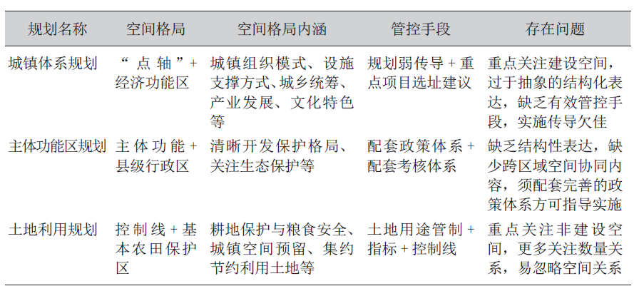 表 1 传统空间性规划中空间格局编制要点及存在问题