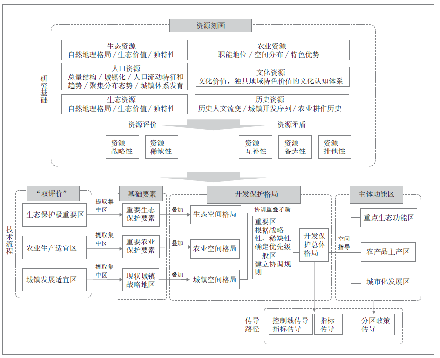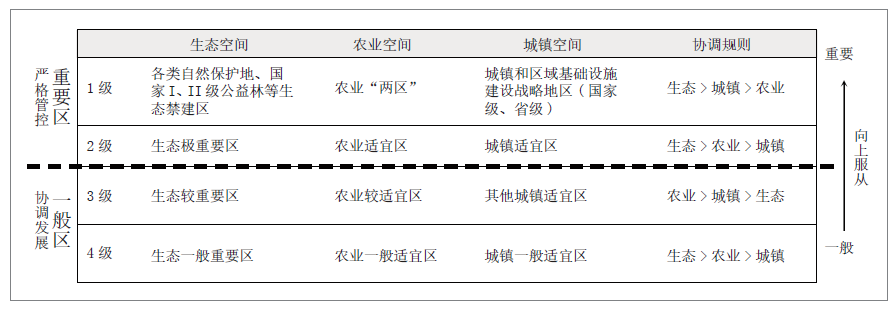 空间结构具备承上启下的作用,承上就是要将目标定位与空间战略作为实践目标,结合自然地理格局、历史人文流变、资源环境承载能力和空间适宜性,最终落实到实体空间上,并明确格局中各类空间要素的主体功能和管控要求,起到启下的作用。