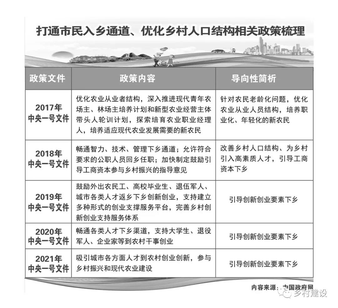 针对从城市到乡村的人口流动,国家政策层面已开始作出反应。中央一号文件从应对农民老龄化、优化乡村人口结构出发,提出了一些导向性、宣示性政策要求。