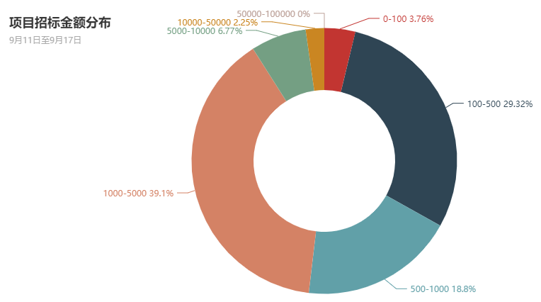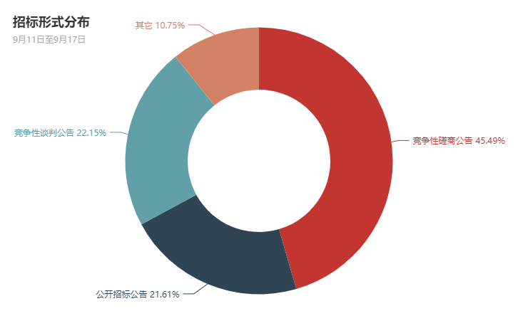 2、本周公开招标、竞争性谈判和竞争性磋商形式在政府采购中依然占主体地位;单项目招标金额基本体现了以公开招标为主流、多种采购形式为补充的灵活多变的政府采购形式;设备、农业类项目占比最大,其次为农村类、规划类、设计类、数据类、监理类、施工类、询价类。