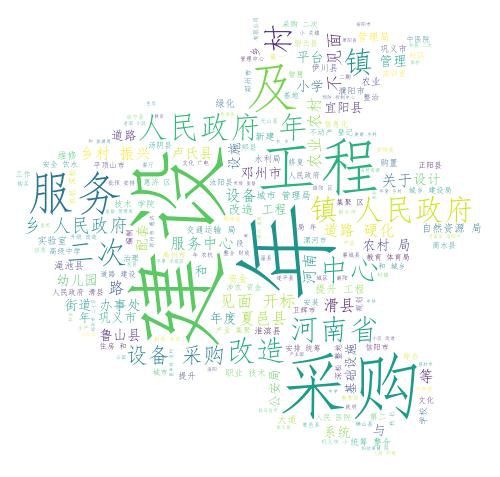 4、在本周的政府采购项目中,从采购项目总量分布上来看,本周郑州市、洛阳市、驻马店市、安阳市、南阳市政府采购需求占主导地位;从采购金额总量分布上来看,本周平顶山市、郑州市、洛阳市、新乡市、南阳市政府采购市场需求占主导地位。