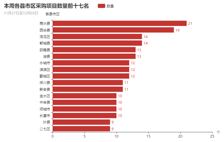 图 12本周各县市区采购项目数量前十七名