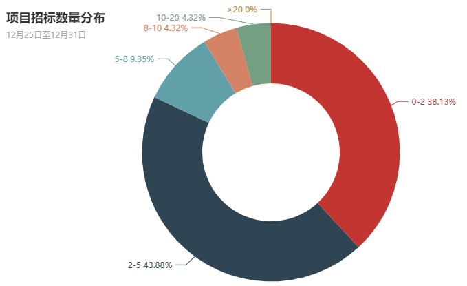 全省各县市区本周采购的项目为533个,其中有53个县市区采购项目小于2个,占全部采购县市区的38.13%;有61个县市区采购项目在2至5个,占全部采购县市区的43.88%;有13个县市区采购项目在5至8个,占全部采购县市区的9.35%;有6个县市区采购项目在8至10个,占全部采购县市区的4.32%;有6个县市区采购项目在10至20个,占全部采购县市区的4.32%;有0个县市区采购项目大于20个,占全部采购县市区的0%。