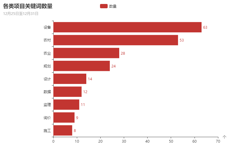 在本周的政府采购项目中,设备、农村类项目占比最大,其次为农业类、规划类、设计类、数据类、监理类、询价类、施工类。数据表明,设备、农村类项目已经成为政府采购的主要方向。
