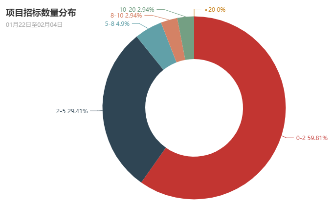 全省各县市区本周采购的项目为294个。其中有61个县市区采购项目小于2个,占全部采购县市区的59.81%;有30个县市区采购项目在2至5个,占全部采购县市区的29.41%;有5个县市区采购项目在5至8个,占全部采购县市区的4.9%;有3个县市区采购项目在8至10个,占全部采购县市区的2.94%;有3个县市区采购项目在10至20个,占全部采购县市区的2.94%;有0个县市区采购项目大于20个,占全部采购县市区的0%。