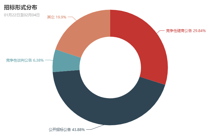 本周数据表明,河南政府采购市场中,公开招标、竞争性磋商形式在政府采购中依然占主体地位。
