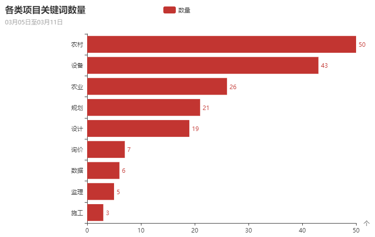 在本周的政府采购项目中,农村、设备类项目占比最大,其次为农业类、规划类、设计类、询价类、数据类、监理类、施工类。数据表明,农村、设备类项目已经成为政府采购的主要方向。