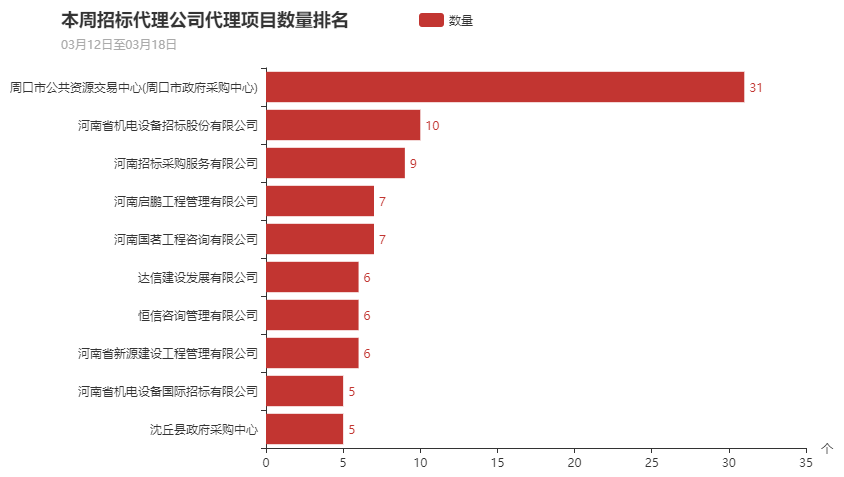 7、本周招标代理领域竞争较为激烈,但周口市公共资源交易中心(周口市政府采购中心)、河南兴伟招标有限公司本周较为活跃并具有相对市场优势。