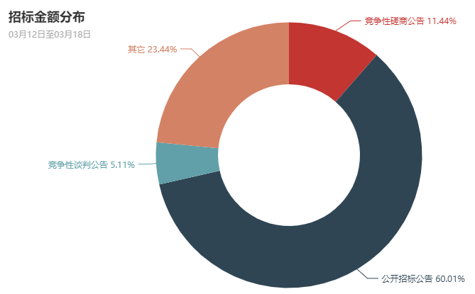 本周单项目招标金额基本体现了以公开招标为主流、多种采购形式为补充的灵活多变的政府采购形式。