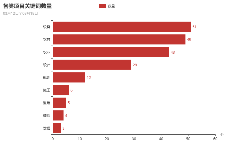 在本周的政府采购项目中,设备、农村类项目占比最大,其次为农业类、设计类、规划类、施工类、监理类、询价类、数据类。数据表明,设备、农村类项目已经成为政府采购的主要方向。