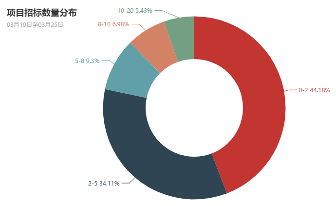 全省各县市区本周采购的项目为507个。其中有57个县市区采购项目小于2个,占全部采购县市区的44.18%;有44个县市区采购项目在2至5个,占全部采购县市区的34.11%;有12个县市区采购项目在5至8个,占全部采购县市区的9.3%;有9个县市区采购项目在8至10个,占全部采购县市区的6.98%;有7个县市区采购项目在10至20个,占全部采购县市区的5.43%;有0个县市区采购项目大于20个,占全部采购县市区的0%。