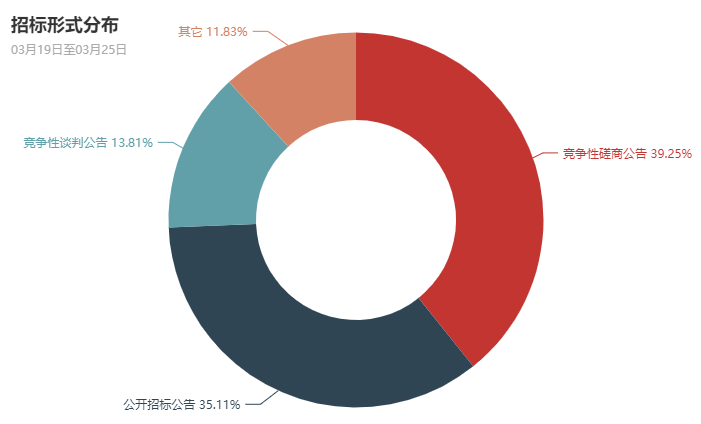 本周数据表明,河南政府采购市场中,公开招标、竞争性谈判和竞争性磋商形式在政府采购中依然占主体地位。