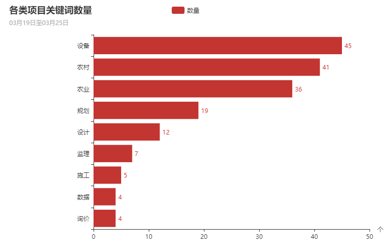 在本周的政府采购项目中,设备、农村类项目占比最大,其次为农业类、规划类、设计类、监理类、施工类、数据类、询价类。数据表明,设备、农村类项目已经成为政府采购的主要方向。