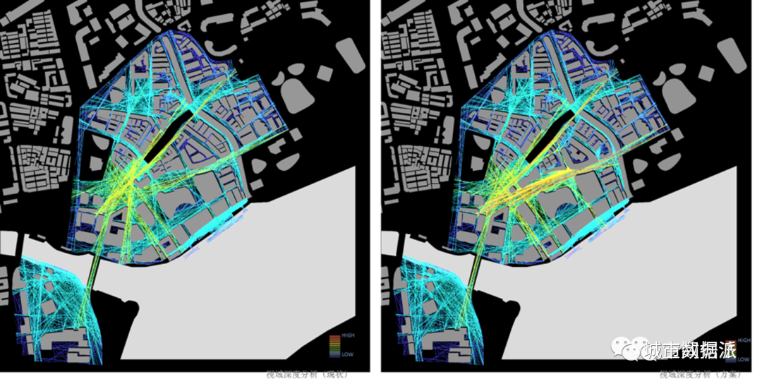 当自上而下的空间形态设计演变为理性的包容性空间设计之后,承担责任的参与方更多,争论与协商也更多,各方是否能理性地讨论,考虑多方需求与市场变化,并形成可行的共识或者合作关系,这是物质空间形态得以实施的关键。因此,空间句法的理论与方法则提供了一种理性而中立的交流方式,辅助各方讨论空间形态,以及与之相关的社会经济因素,如人车流、开发强度、尾气污染等,促进各方讨论空间形态在城市活力、安全以及可持续发展等方面的折射,明晰物质形态的争论焦点,推动各方达成设计共识。