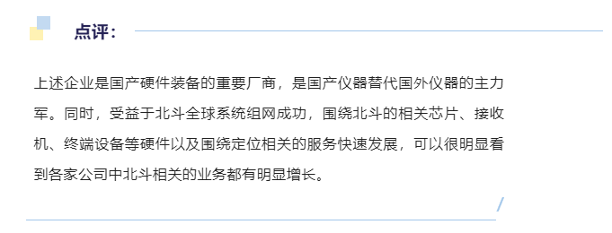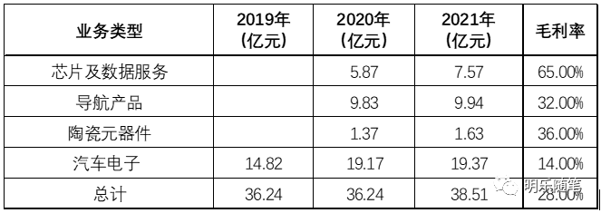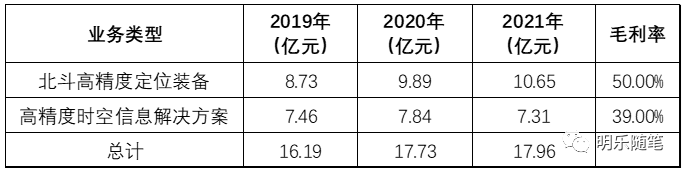 在2019、2020年,华测导航在行业业务划分上仅归纳为卫星导航系统技术开发及装备制造业一个类别,因而无法从行业口径上判断业务方向。从业务描述变化中,2019年主要围绕测绘地理信息产业融合升级,2020年是形成测绘与地理信息、导航控制与无人驾驶两大应用,2021年是建筑与基建、地理空间信息、资源与公共事业、机器人与无人驾驶四个重点方向。2020年,测绘地理信息包括高精度GNSS接收机、GIS数据采集器、位移监测、实景三维;导航控制与无人驾驶包括无人机、无人船、农机自动驾驶、工程机械高精度智能导航控制、智能机器人、商用车、乘用车自动驾驶。2021年,建筑与基建占比45%,地理空间信息18%,资源与公共事业31%,机器人与无人驾驶5%,可见华测导航在建筑与基建、资源与公共事业(农业、林业和公共事业)这两个方向有深入应用。公司深耕导航定位领域,持续加大芯片、高精度天线、微波陶瓷元器件和云服务为代表的核心基础技术研究,务实打造“云+芯/端”(含GNSS基础产品和服务)与“汽车智能网联产品与工程服务”的“1+1”战略业务板块格局。2019、2020年公司的业务划分为基础产品业务(芯片、板卡、导航终端、陶瓷元器件)、汽车智能网联与工程服务、信息装备业务、基于位置的行业应用与运营服务(海洋渔业安全生产信息系统应用解决方案与信息服务),2020年调整为芯片及数据服务、导航产品、陶瓷元器件、汽车电子。在上述四大业务中,汽车电子及技术服务占到50%,其他芯片、导航、陶瓷元器件加起来占比50%。2021年业绩增长,主要受益与北斗定位芯片的爆发式增长。公司自成立以来,围绕北斗卫星导航、核心电子元器件方向,主要从事北斗卫星导航“元器件—终端—系统应用”全链条核心产品的研制、生产及销售运营,集成电路设计、开发及销售,以及视频光电、安防监控等智慧城市建设运营服务业务。集成电路业务主要从事集成电路设计、部分测试和销售,主要产品包括北斗关键器件、转换器、软件无线电(SDR)、频率合成器、视频接口、硅基多功能 MMIC 等六大重点系列数百种产品。北斗导航综合应用主要包括的北斗终端(手持型、车载型、船载型、指挥型等9大系列100多种终端)和北斗综合应用(国土地灾行业、地表位移高精度监测场景、应急管理)。在智慧城市建设运营服务领域,公司基于自研的视讯类元器件技术和系统工程经验,围绕“图像、智能、光电、平台”技术发展方向,在视频图像领域深耕多年,形成了成体系、成系列的智能视频产品和解决方案。公司业务的增长受益于集成电路以及北斗导航服务方向的市场增长。公司自成立以来,一直深耕北斗卫星导航产业,为国内高精度卫星导航定位产业的领先企业之一。公司专注于高精度定位技术产业链相关软硬件产品和服务的研发、制造和销售,以北斗高精度定位装备,高精度时空信息解决方案两大产品体系为基础,重点发展测绘与空间地理信息、北斗高精度智能应用两大核心业务领域。公司主营北斗高精度定位装备、高精度时空信息解决方案两大核心产品体系,(1)北斗高精度定位装备:主要包括卫星导航接收终端(RTK)、时空数据采集器(GIS)、卫星定 位参考站(CORS)、海洋声呐探测设备、激光雷达测量装备、全站仪、车载高精度定位传感器、核心卫导元器件等。(2)高精度时空信息解决方案:主要包括高精度时空数据、软件平台、行业应用解决方案。其中:高精度时空数据主要为基于时空智能技术和多维时空信息平台的高精度导航地图、实景三维地图、倾斜摄影数据、行业专用数据(如:电力/水利/铁路)等;软件平台主要包括高精度定位算法引擎平台、时空数据生产处理平台、三维可视化平台,时空信息管理平台等;行业应用解决方案包括但不限于组合导航方案、激光扫描方案、航空测量方案、灾害监测方案、桥梁监测方案、海洋探测方案、机械控制方案、北斗高精度服务方案、车载高精度方案等。公司在影像RTK、新能源汽车自动驾驶车载高精度产品、北斗高精度地基增强系统CORS网建设业务、安全监测类业务、三维激光新产品、海洋新产品方面增长较明显。公司始终坚持以北斗高精度应用为主营业务方向,以高精度卫星导航技术为基础进行相关产品的研发、制造和销售,并在专业市场拓展行业应用,为众多行业提供北斗高精度产品服务和时空信息“端+云”全方位行业解决方案。重点拓展北斗高精度、北斗移动互联、时空信息服务等三个业务领域,在测量测绘、精准农业、机械控制、智慧城市、民用航空、交通运输等细分市场进行战略布局与市场开拓。北斗高精度业务主要为测量测绘、农业与工程机械控制、航海应用、形变监测等专业市场或领域提供高精度产品及服务;北斗移动互联业务依托于时空信息技术,在民航、交通、智慧城市等专业领域,提供移动互联时空信息“云+端”解决方案。时空信息服务为智慧城市、国土规划、环保、交通、油气开发、农村土地承包经营权确权、地籍调查、不动产 登记等众多专业市场提供包括时空数据获取、时空数据管理和时空应用在内的全方位时空信息服务。公司这两年业绩不太好,主要受通导一体项目的影响。但是,北斗相关的产品与服务业绩还是在增长。