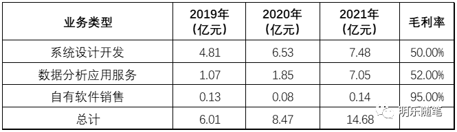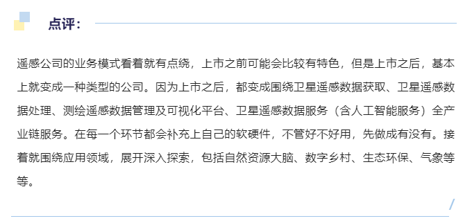 综合来看,软件产品的销售相对较少,技术服务开发及系统集成成为较主要的收入方式,拓展和深入行业应用成为未来主要的服务模式。公司自创建以来,始终扎根于卫星应用产业,以卫星数据处理软件为核心,按照产业发展的不同阶段以及交付模式的升级迭代,结合不同行业应用场景,同时向产业链上下游探索延伸,陆续推出了空间基础设施规划与建设、行业应用服务以及云服务三条产品线。从业务数据来看主要从事业务的系统开发以及数据应用服务,软件产品占比较少。公司这两年业务快速增长主要收益于特殊市场以及风险普查等大型项目的主导型优势,以及在其他业务领域的快速渗透。公司稳步推进宇航电子、卫星及卫星大数据(含卫星大数据、地理信息和智能测绘)、人工智能(含人工智能芯片、人工智能算法、智慧交通及安防、大数据运维)业务板块的经营管理工作,不断夯实各板块的经营水平,进一步提升核心竞争力,朝“一流的商用宇航公司”的目标奋发迈进。2021年公司业绩在宇航电子版块是增长的,但是在卫星大数据及服务、人工智能版块都是下降的,其中卫星大数据及测绘地理信息版块占比60%。