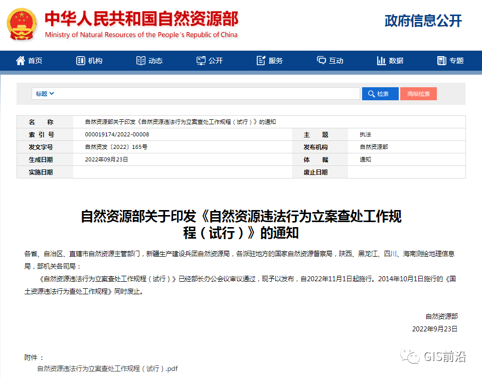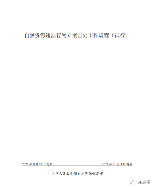 《自然资源违法行为立案查处工作规程(试行)》2022年11月1日起施行,2014年10月1日施行的《国土资源违法行为查处工作规程》同时废止。