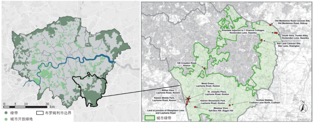 图8 英国大伦敦规划(左)与布罗姆利市城市规划中的“绿带”控制边界(右)