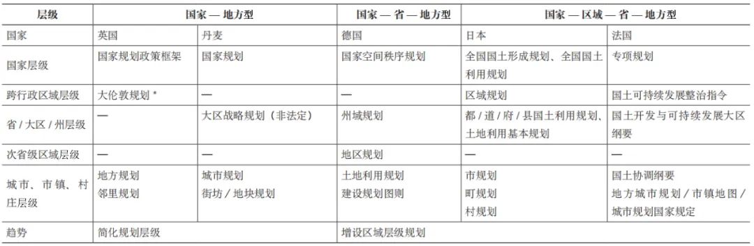 注:*大伦敦规划是特例,是英国目前仅存的区域层级的规划。