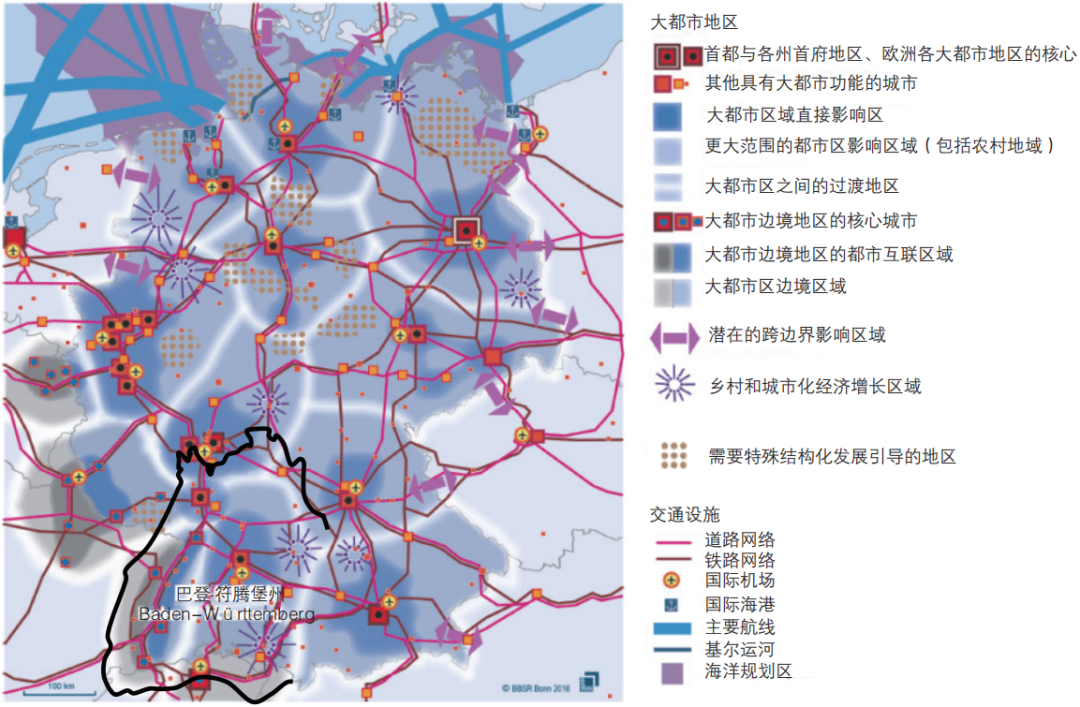图4 德国州空间规划中的中心地结构规划(左)与空间类型规划(右)(以巴登符腾堡州为例)