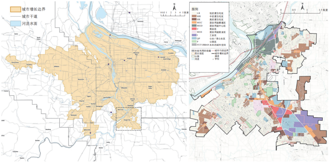 图6 美国波特兰都会区规划(左)和俄勒冈市总体规划中的城市增长边界(右)