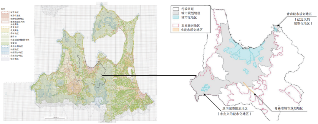 图7 日本青森县土地利用基本规划(左)与青森市城市规划(右)